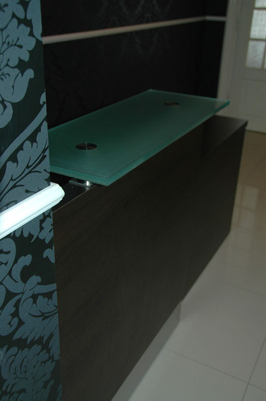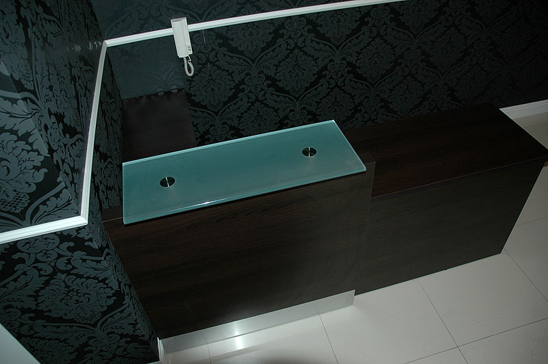 Lada recepcyjna z ekskluzywnych materiałów wykończeniowych. Konstrukcja modułowa daje swobodę dowolnego zaplanowania przestrzeni, a prosta i nowoczesna forma pozwala stworzyć wizytówkę firmy.