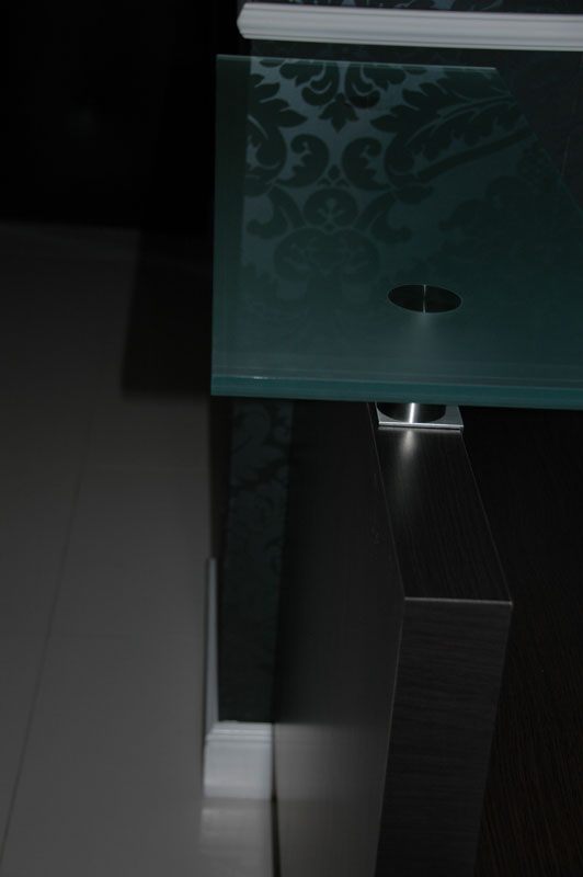 Dostępne nadstawki wykonane z płyty gr. 18 mm, szkła gr. 15 mm, marmuru lub granitu 20 mm mocowane na wspornikach 8 cm z nierdzewnej stali szczotkowanej.