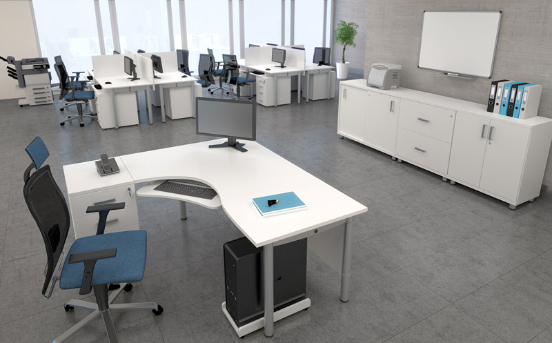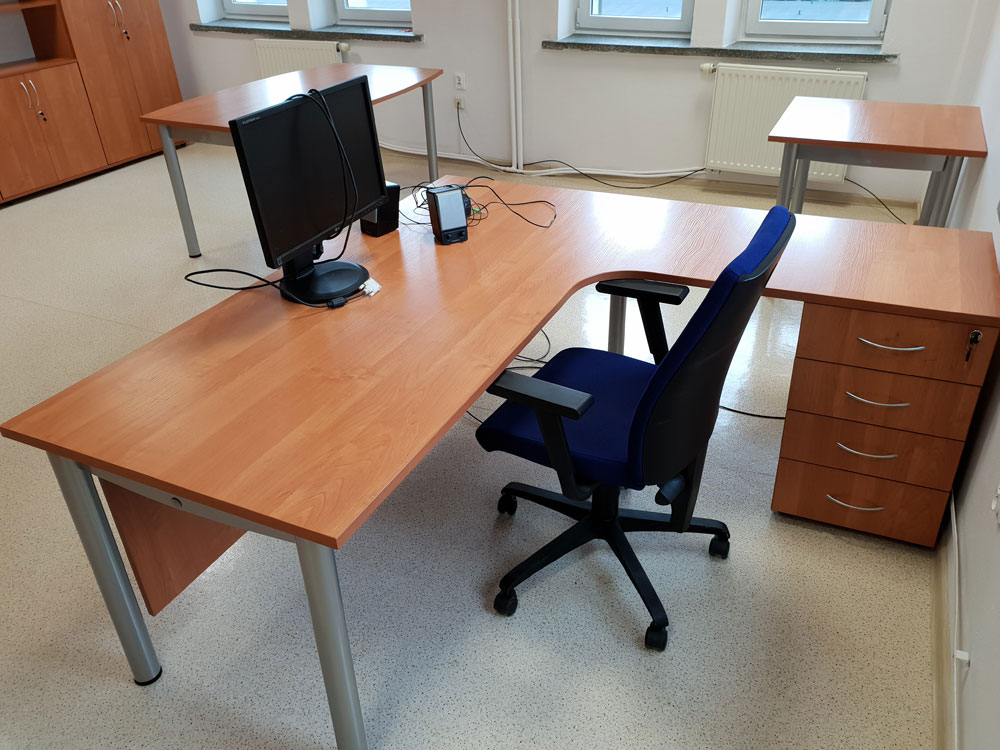 - Kilka kształtów biurek (proste i narożne) w różnych rozmiarach i bogatej kolorystyce.