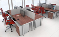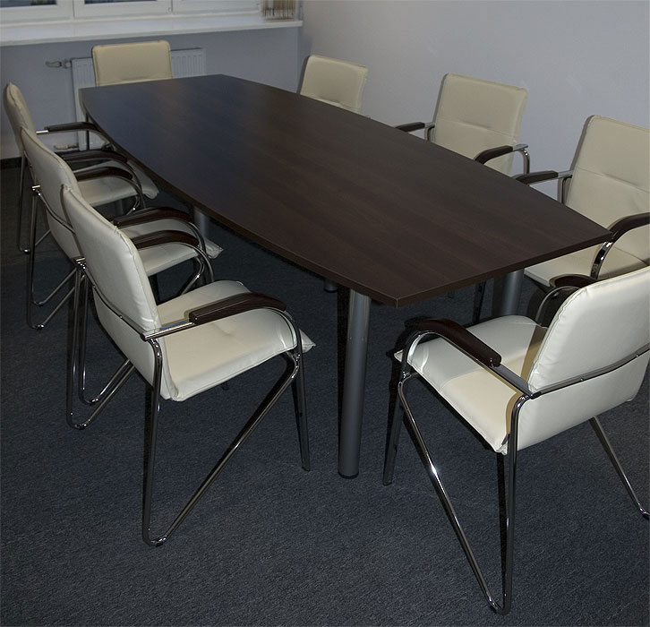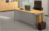 Biurka nevada na solidnym stelażu metalowym posiadają cztery nogi o profilu okrągłym fi 60 mm z regulacją wysokości +/- 25 mm. Nogi zespawane są ze sobą estetyczną blachą łączącą. Blat występuje w dwóch grubościach 18 lub 25 mm.
