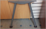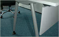 - Nowoczesne nogi biurek o ciekawym kształcie z ukrytym kanałem na kable.
