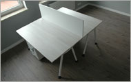Biurka virginia na stelażu metalowym. Dwie nogi o kształcie odwróconej litery "V" i podblatowa belka łącząca, która jest jednocześnie kanałem poziomym na kable. Blat w dwóch grubościach do wyboru: 18 lub 25 mm.
