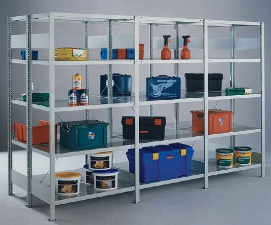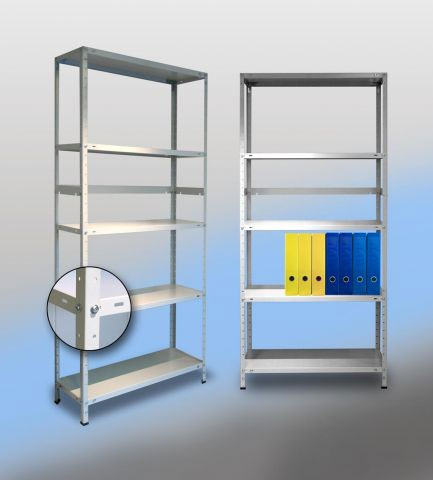 Regały magazynowe o uniwersalnym zastosowaniu np. w magazynach, garażach czy archiwach. Można na nich przechowywać lekkie artykuły piśmienne, jak i ciężkie materiały metalowych. Stabilna konstrukcja regału - półki w zależności od modelu przenoszą obciążenie od 90 kg do 150 kg. Regały montowane za pomocą śrubowych elementów złącznych lub metodą "na wcisk" (typ RMM). Regały magazynowe mogą być wykonane z malowanej blachy stalowej o bogatej kolorystyce wg palety RAL (typ RM) lub blachy ocynkowanych (typ RO) przy niższym koszcie zakupu.