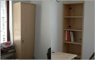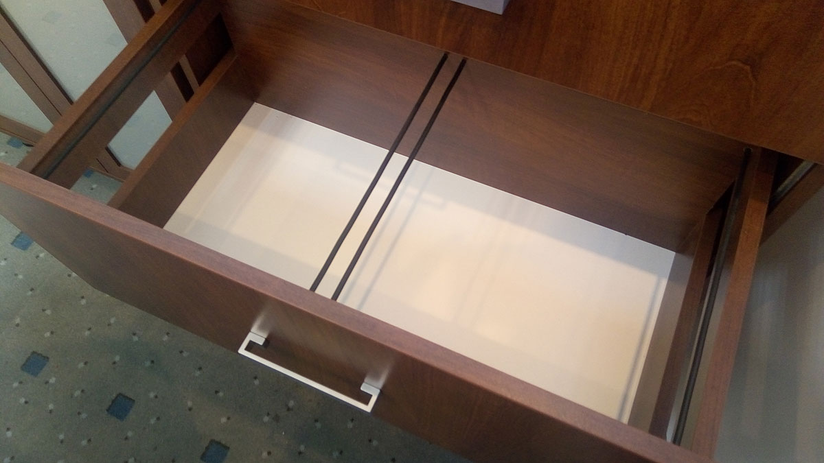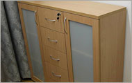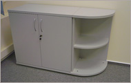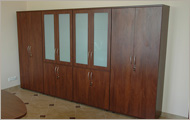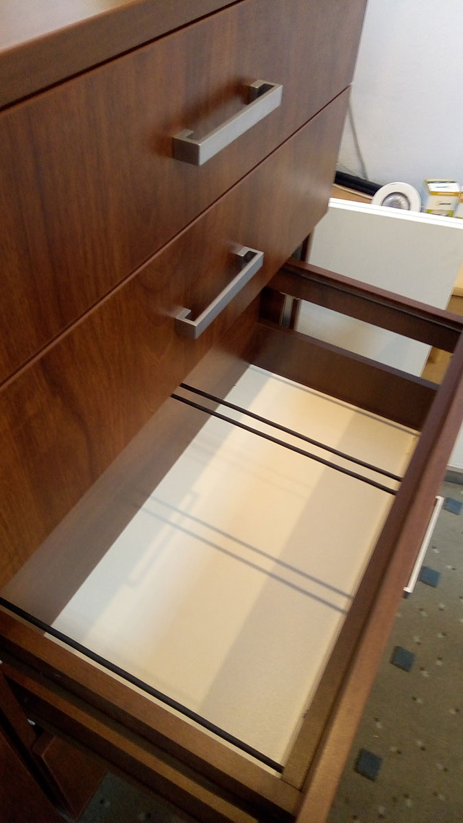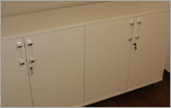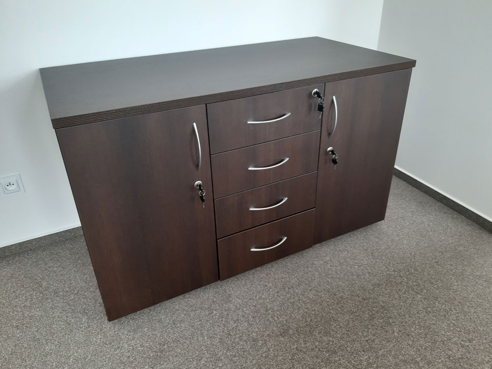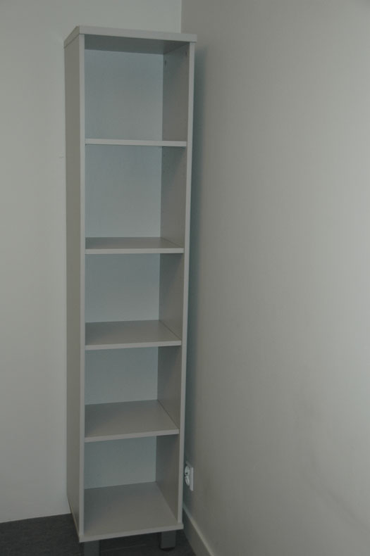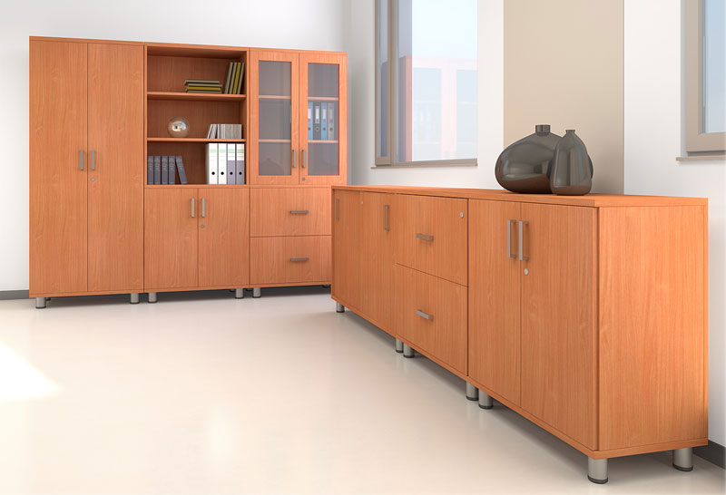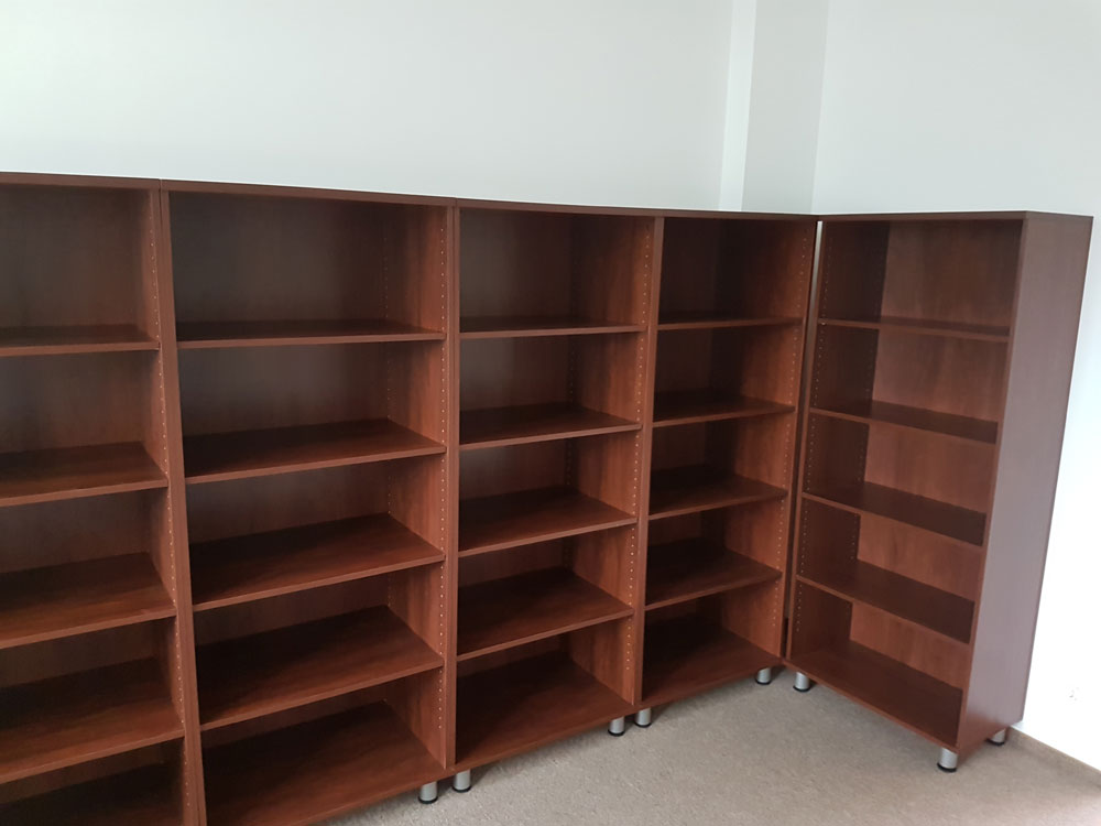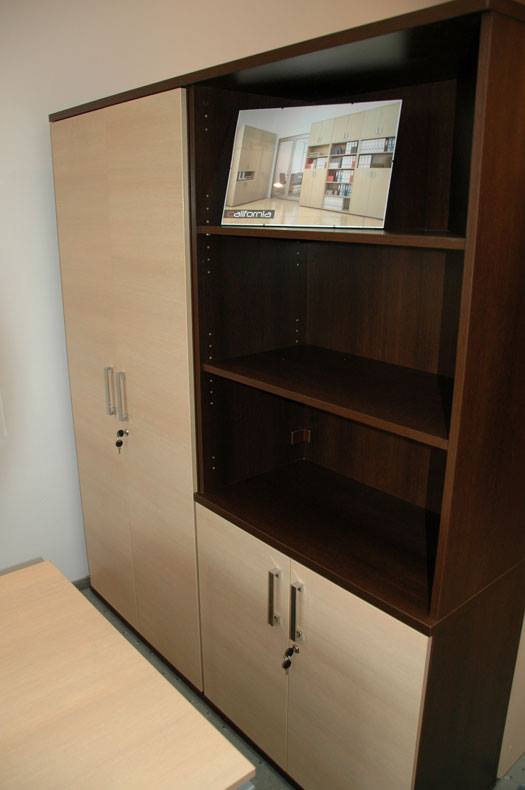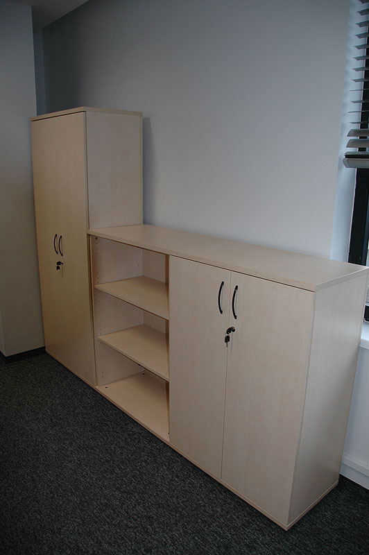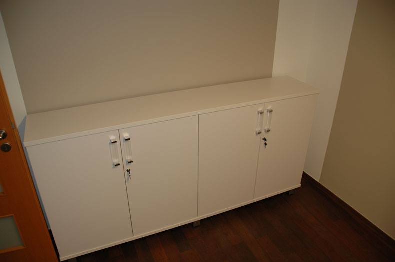 Regały na nóżkach niskich plastikowych o wysokości 2,7 cm. Różne rodzaje drzwi i szuflad, regały także z nadstawkami. Zamki w standardzie.
