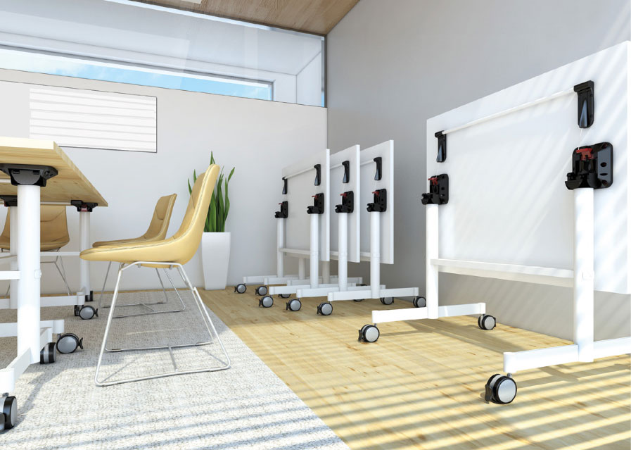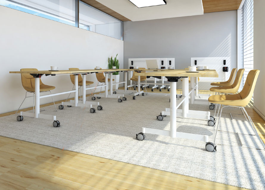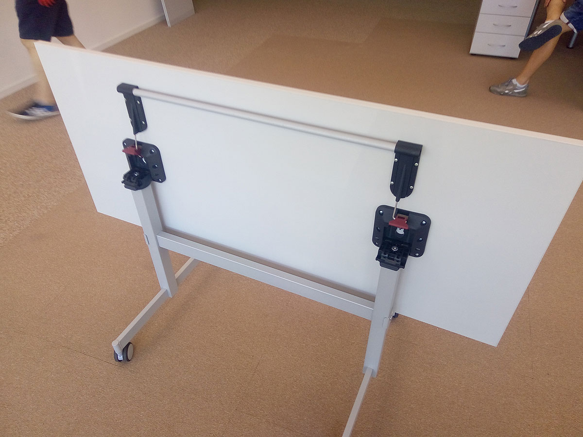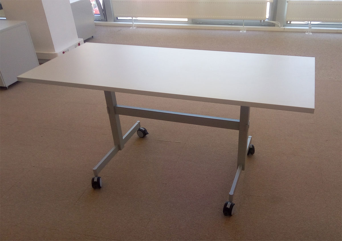 Stoły konferencyjne colorado na stelażu metalowym w kilku kolorach. Blat składany do pionu, a stelaż na kółkach z hamulcem.